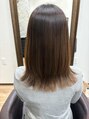 ダメージによるパサつき・うねりを酸性縮毛矯正で抑えていきました。かける前と比較して潤いと艶感UP!表面のレイヤーはなくしていくので揃える程度にカットし毛先に厚みを出しました。