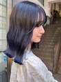 ブルーブラック ウェーブ巻き ミディアムボブ 髪質改善カラー