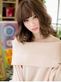 【スタイルは★ブックマーク★が便利】目の上ギリギリの斜めバングで目力UP。サイドの前下がりラインで輪郭カバーして小顔に。くせ毛風カールが大人かわいいふわミディは耳かけや厚めバングもGOOD。甘え顔に仕上げます♪(メイク担当:北浦和店 棟方)
