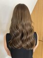 なめらかなベージュハイライト、ウェーブ巻きで立体的に