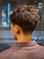 ツーブロックと刈り上げでスッキリとした清潔感を出してます。ツイストスパイラルパーマで動きを出しつつ少しボリュームを残してビジネスにも対応できるようにしてます。メンズショートメンズヘアカットメンズヘアセンターパートメッシュ