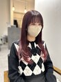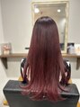 数ヶ月前にはブリーチをしてあって、根本は黒い状態です。根本には濃い赤、毛先にはボルドーでグラデーションにしてあります。スタイルはレイヤーです。