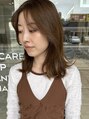 ブリーチなしで赤みのない透明感のあるナチュラルベージュカラー。長めの前髪とサイドのレイヤーで大人っぽいくびれヘアにスタイリングしました。