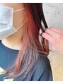 インナーカラーピンクオレンジ ワンブリーチ イヤリングカラー