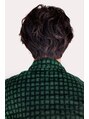 サイドはツーブロック、バックは刈り上げない程度の短さ、トップはショートレイヤーベースです。前髪は分けることも下ろすこともできる眉上の長さです。カラーは前髪のみ明るめのカラーでワンポイントプラスしています