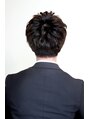 ショートレイヤーベースです。スタイリング剤で自然な束感が出るようにし、顔まわりは少し重めになるようにカットしています。パーマは動きが出るようにしつつやりすぎ感のないナチュラルなカール感になるようにかけています。
