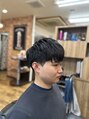 横と後ろはスッキリ刈り上げ、セットしてもしなくてもどちらでもキマる長さに調整。頭の形的に上にボリュームが出にくいので、骨格に合わせたカットを施し、簡単にカッコイイスタイルになりました!!