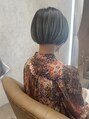 毛先のグラデーションを活かしたグリーンヘア*ピシッとしたボブで首元もスッキリと