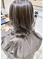 ハイライト以外のところは少し暗めのグレージュに特殊な配合でハイライトとお白髪をばかすように色味を入れています