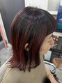 表面だけ、放射線状にラインが出るようにブリーチし、下の方は根本をあけてブリーチをしてベースを作り、アンカラーでブリーチのところだけに赤みのピンクを◯ちょっと遊びのあるカラーにしたい方は是非!