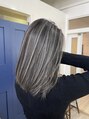 小顔 ネビージュアッシュグレージュハイライトカラー◎