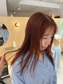 オレンジベージュカラーレイヤーカットブリーチ無しタッセルボブ/ホットペッパービューティー