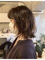 【気に入ったスタイルはブックマークをしていただくと便利です】カットはミディアムレングスのレイヤースタイル。元々のクセを活かし、顔周りと表面のみにレイヤー入れてラフな動きを。ハーフウエットでムースとバームでパーマのように仕上げて。[薬院/警固]