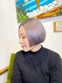 ブリーチしてグレーをオンしたボブスタイルです。グレーの濃さや髪質によってブリーチの回数は変わります。ご相談ください。