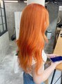 レッドカラーのダブルカラーです。元々髪色が明るいと色味が出やすいですし、何回も重ねると鮮やかさが出やすいです。