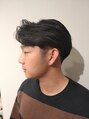 センターパートスタイルに動きを出すようにニュアンスパーマをかけています