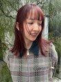 暖色カラーダブルカラー赤ボルドーカラーミディアムボブ赤