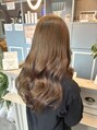 ピンクブラウン ゆる巻きロング ブリーチなしカラー 美髪