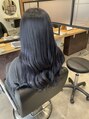 青髪 ネイビーカラー ケアブリーチ ハイトーン 巻き髪