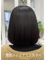 ギリ束ねれる長さのミディアムボブにカット♪ノンジアミンカラーで艶髪!!