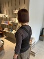 真っ直ぐなラインのワンレンボブスタイル。丸みを無くしてフラットなシルエットがモード感抜群。カラーもパープル系でオシャレなシニア世代ヘアへ