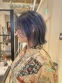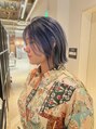 こちらはブリーチで色を抜いた後にブルーに少しシルバー味を加えたアイスブルーカラーです!普通の青とは少し違い可愛い色になってます!