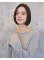 前髪なし透明感ミルクティーベージュ大人ボブ小顔カット