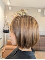 パツっとボブ。少しながさを残したいそうなので、ボブに。アレンジで軽く外ハネに。