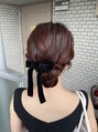 - 参列ヘア シニヨン まとめ髪 アップスタイル ベロアリボン