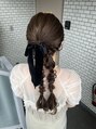 ツインアレンジ 編みおろし 参列ヘア イベントヘア ベロアリボン