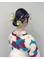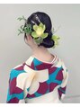 すっきりタイトシニヨンに生花と金箔で個性的に♪