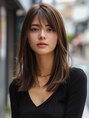 ミディアムレイヤーボブルフ黒髪ネビージュ小顔ワンレン20代30代