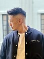 アンダーはスキンフェード、フロントを立ち上げやすいように短く切り込んでいます。
