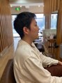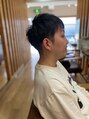 直毛で髪が固いので突っ張った印象のスタイルになり易いのでラインをマッシュ上にとり柔らかいスタイルにデザインいたしました