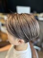 分け目を変えても髪をかきあげても、どこから見てもハイライトが目立つようにブリーチしています