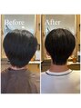 カットとダウンパーマです。ダウンパーマは根本に当てて抑えたいところを抑えます。