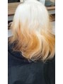 毛先のオレンジに退色したカラーと白髪を活かして、根元から馴染むようオレンジでハイライト入れさせて頂きました^^