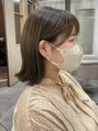 肩にあたる長さで、外ハネになるスタイルです。カラーは赤味をとったベージュカラーです。[髪質改善/縮毛矯正/ブリーチ/イルミナカラー/アディクシー/オージュア/ショート/新小岩/平井/市川/総武線]