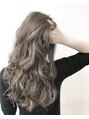 動きのあるハイライトを立体感が出るようにいれ、グレージュカラーで透け感のあるヘアカラーを作ってます。ストレートでも巻いても可愛い大人スタイルです。