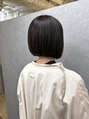 前下がりのボブは重めに仕上げまとまりやすく、アッシュ系のブラウンカラーで暗くても重くなりすぎない印象に。