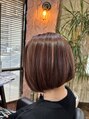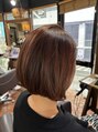襟足がすっきりした緩やかな前下がりボブ。ハイライトは前のカラー時のをそのまま再活用!暖色の柔らかい、温かみのある、寒い時期にぴったりのカラー!やってみませんか?石橋Instagram rosso_ishibashi__