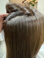 【抗酸化安定処方のカラー剤】・【白髪染めを使わずに自然にナチュラルなカラーに。】・【色落ちしてもギラつかずに透明感のある髪に。】・【髪の負担を抑えて、明るいカラーに】・【退色しても白髪を目立ちにくく】・【頭皮につけないゼロテク使用】
