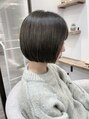 ぱつっとラインを出した切りっぱなしボブです。カラーはブリーチをして暗めのグレーです。