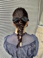 三つ編みのポニーテール♪タイトにシンプルにまとめたヘアアレンジです