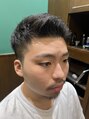 ツーブロックで周りをさっぱりと、上の部分は薄くならないぐらいにすいて動きを出しやすくしてます!