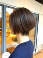 大人なマッシュショートで、丸みを出して頭のかたちをよく見せるようにカットして、くびれがあり頭の形をよくみせた骨格を考えたカットです。ハイライトでナチュラルにカラーを仕上げてます。