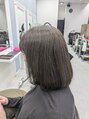 結べる長めのボブスタイルです♪結ぶ事が多くお手入れを簡単にしたい方にオススメです◎カラーは脱白髪染めで明るめのオリーブ系ベージュです(^^)ファイバートリートメントでツヤとカラーの色持ちも長持ちします!カラーに入れる時短トリートメントです♪
