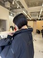切りっぱなしのまえさがりボブ。かなり膨らみやすい髪質なので、なるべくコンパクトにおさまるよう特殊なスキバサミを使用しています☆朝は軽くアイロンして、オイルだけで一日中ツルッと◎サイドバングを作って後ろに流すことで、より小顔見えします!