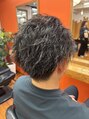 かき上げるスタイルのツイストスパイラル。カールを伸ばしてスタイリングすれば緩くも出せるのである程度の職種の方も大丈夫です!