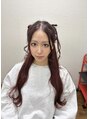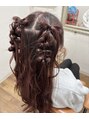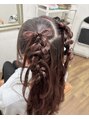 - レッドカラー/ヘアセット/リボンアレンジ/ワインレッドカラー/プロフィール撮影/アイコン撮影/池袋